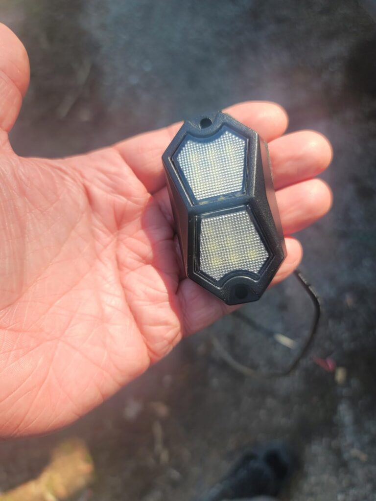 Drawing about 3.2 watts per light, these are bright and would work well as a rock light, area illumination or maybe in the bays of your RV but they are a little expensive for what you get. The lights are built on a metal housing with 18 LEDs each and some very fine/small gauge wire for the positive/negative connection. Hardware is provided but you’ll likely have to source your own if it’s anything other than mounting to a panel you have access to on both sides. There are no plugs on the wires, no extensions, no harness, switches, phone app or remote…just a set of six white lights. You’ll need to build your own harness which may not be a big deal for some but if it is for you, keep this in mind. 3.5/5