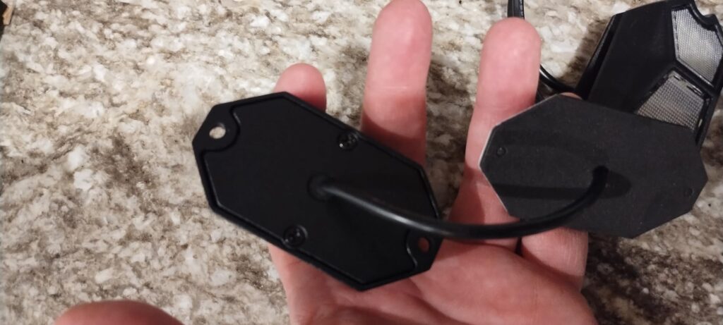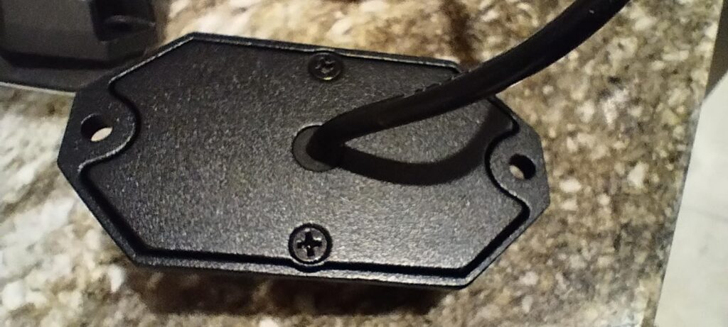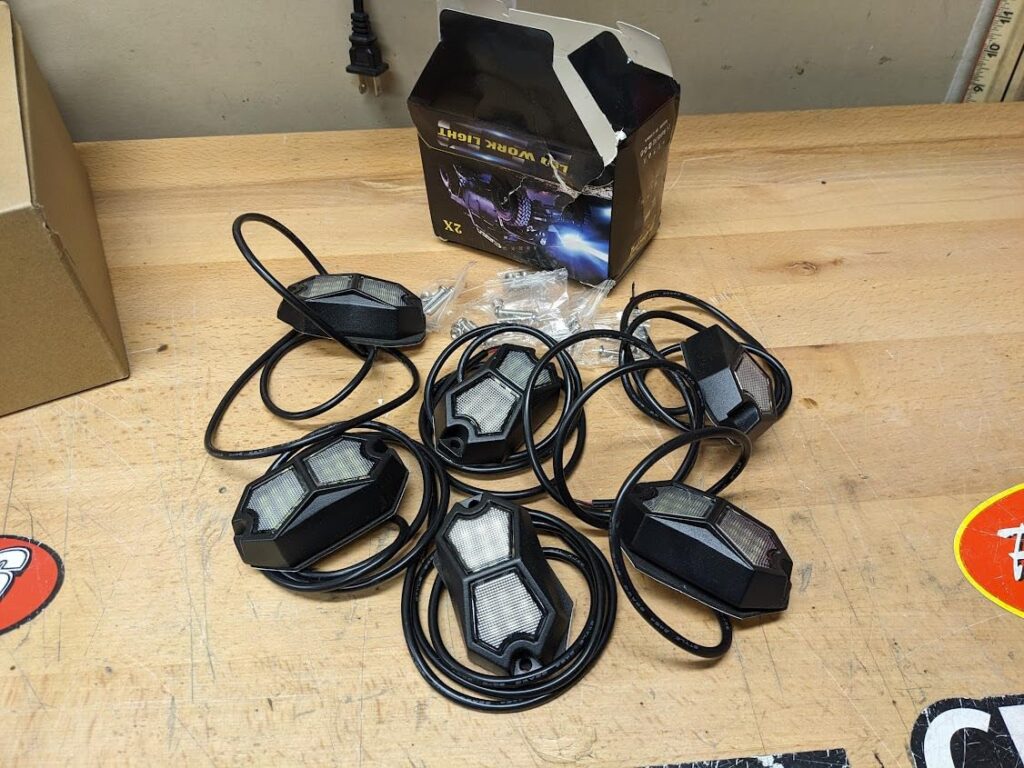 These are nice, compact, and sturdy appearing rock lights. The enclosed mounting hardware is just some long screws, washers, and nuts. More than likely I’ll mount these directly with self tapping screws to the frame. Plenty of length to the pigtail for connecting to a wiring harness.